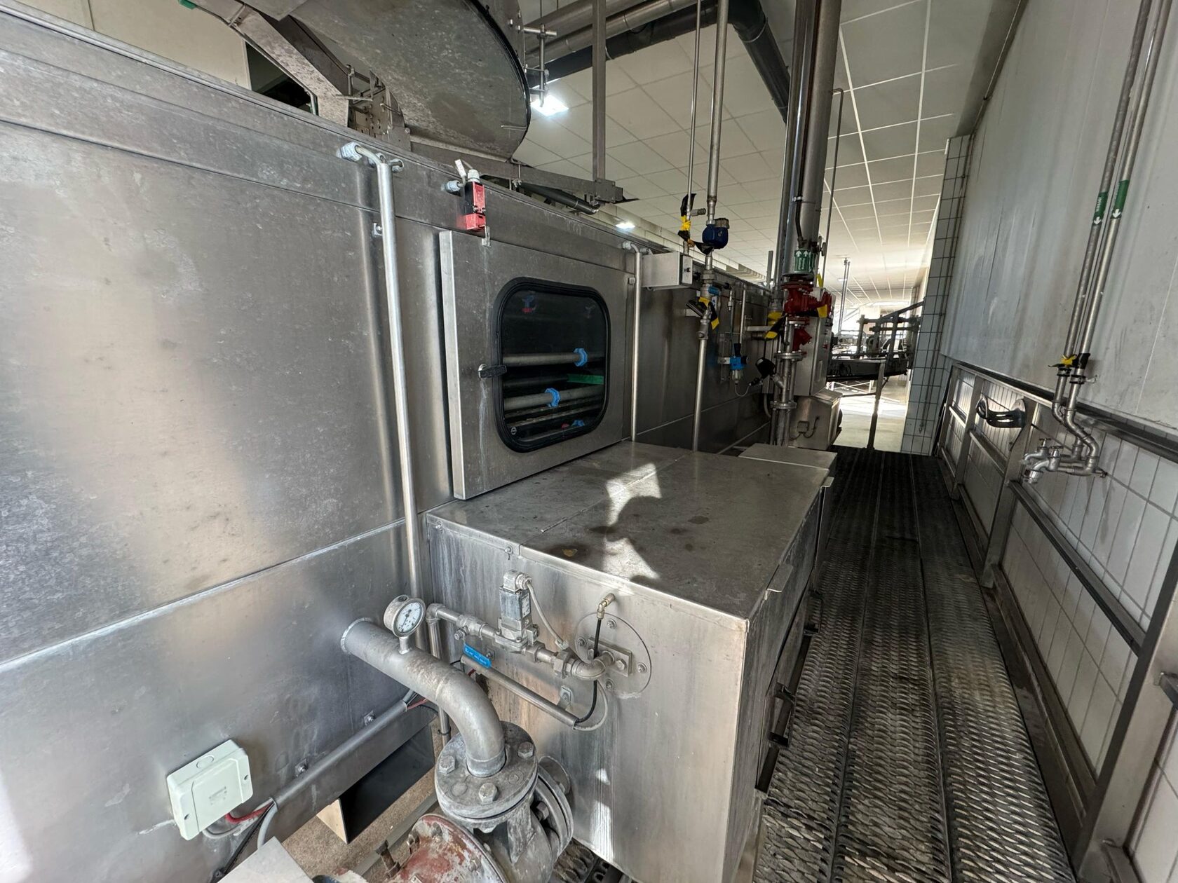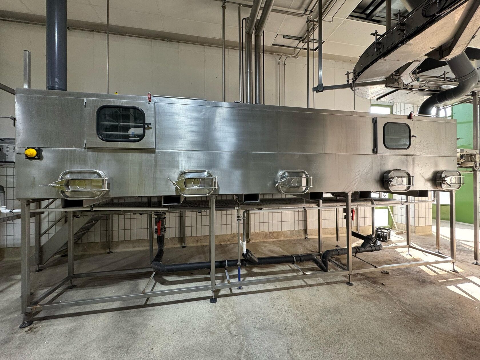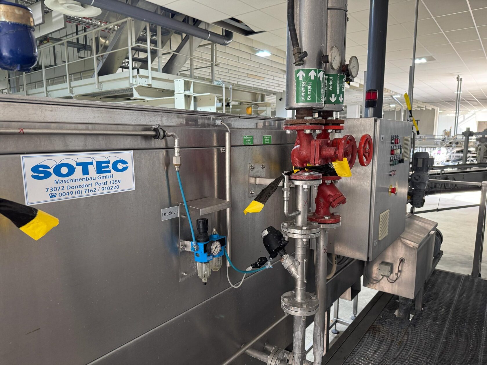 SOTEC WAH35-1 – High-Performance Crate Washer for Returnable Packaging Lines The SOTEC WAH35-1 is a robust industrial crate washing machine (Kastenwaschanlage) designed for thorough cleaning of reusable plastic crates, boxes, and containers in high-volume beverage and food production environments. Commonly integrated into returnable glass/PET bottle lines (e.g., alongside KRONES/KHS systems), this model ensures hygienic, efficient crate reprocessing before refilling. Key Features & Benefits: