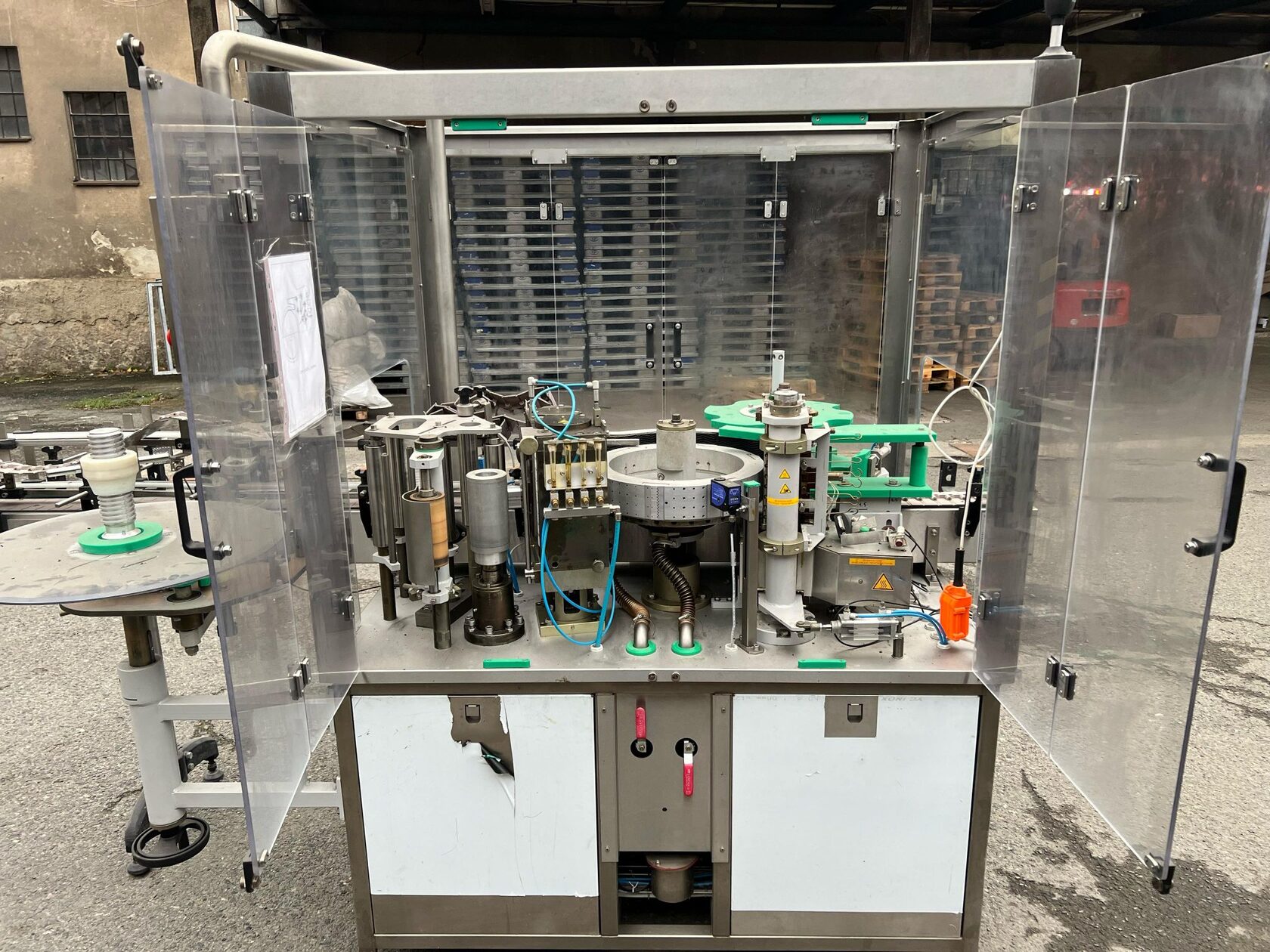 Labelling machine, MEB for three self-adhesive labels 2500 bph, year 2015.