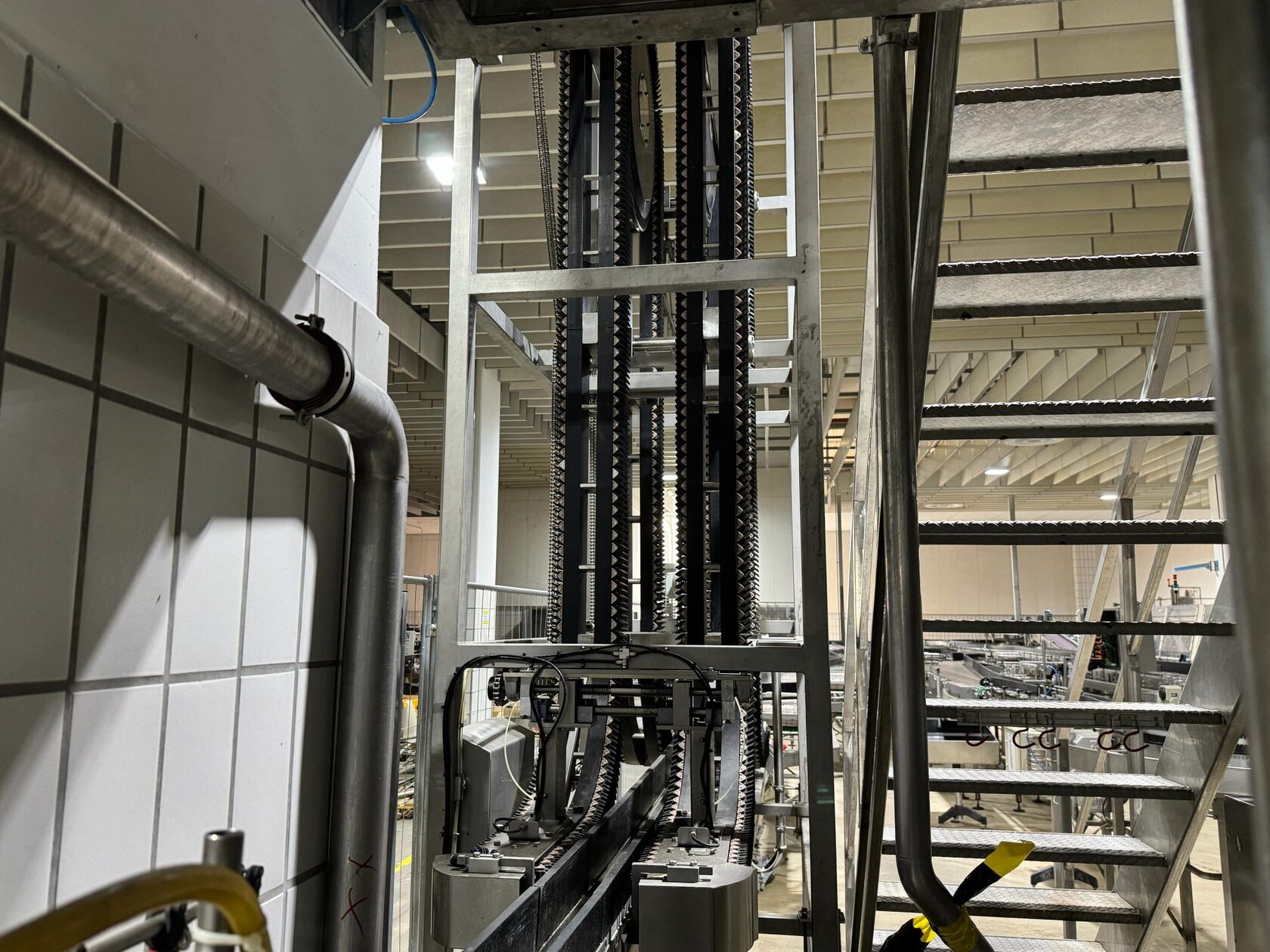 Automated end-of-line logistics requiring reliable crate flow between packing, inspection, washing, and palletising