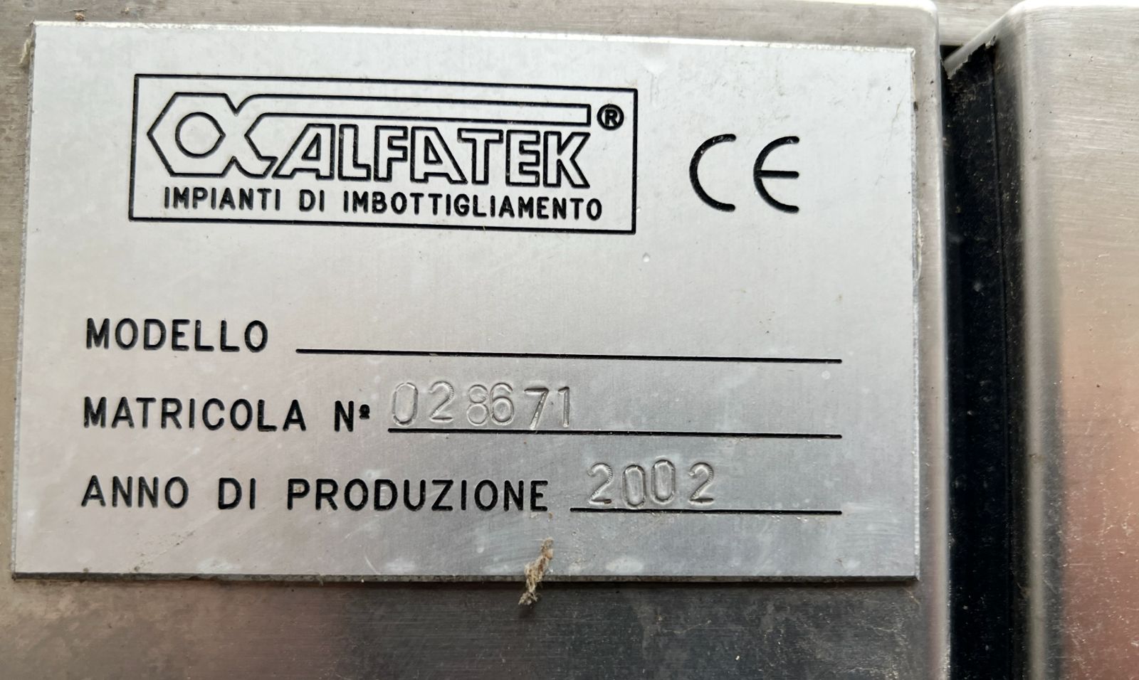 Triblock, Alfatek 2500 bph, 12 rinse aid grippers, 4 inert gas heads, 12 fillers, 1 capping head for cork plugs, year 2002.