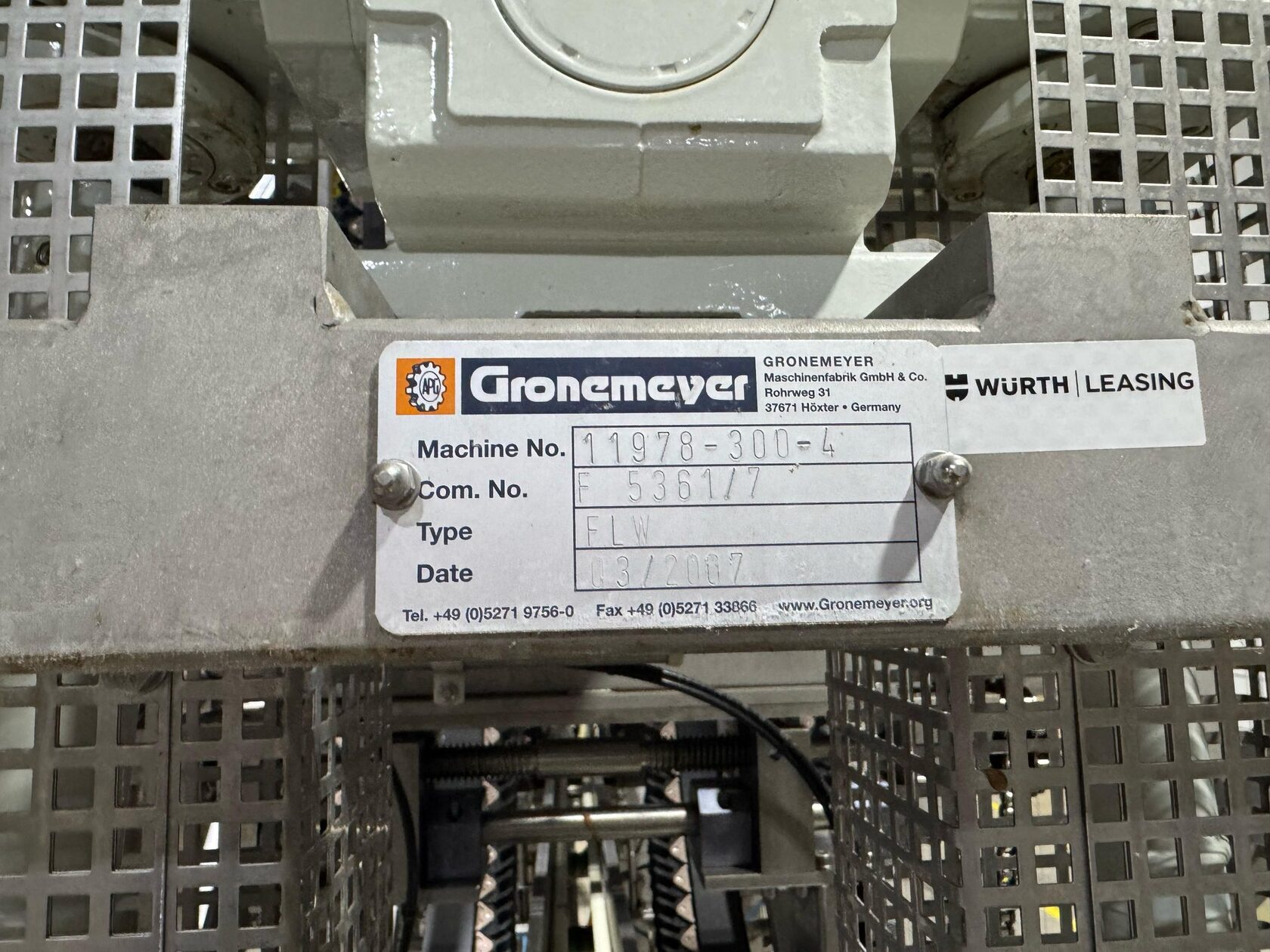 Vertical Side Grip Conveyor Gronemeyer, is used to overcome height differences in production lines. The side gripper technology enables a space-saving vertical transport. Bottles, jars, cans, cartons, bundles, etc. can be conveyed with this conveying principle. Lately worked with PET bottles of different formats. Conveying capacity up to 60,000 units/h Height difference up to 6 m Product weight up to 15 kg Product width 15-200 mm