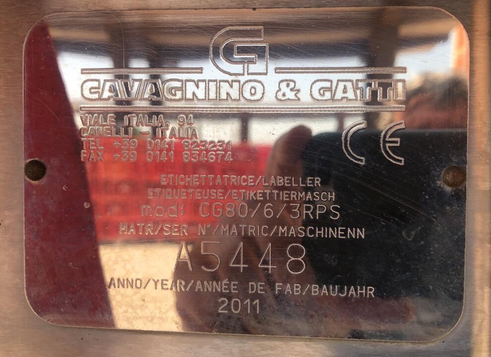 Labelling machine, Cavagnino for three self-adhesive labels 4000 bph, year 2001.